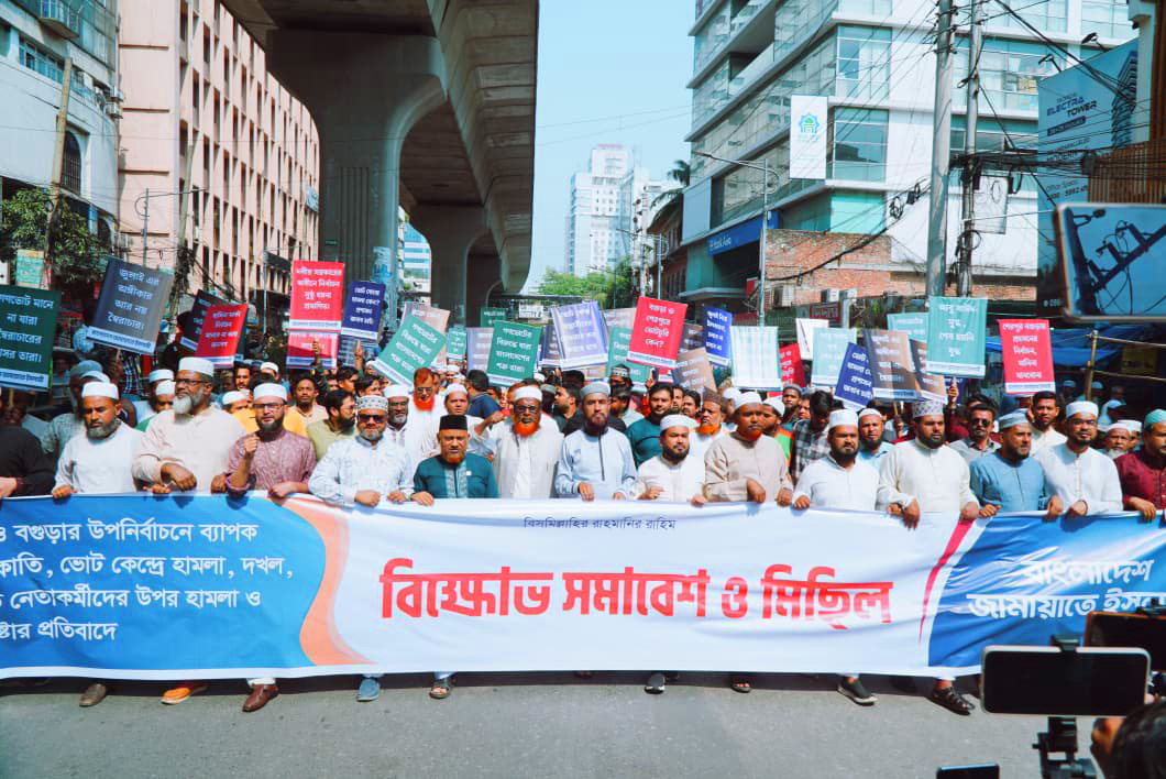 শেরপুর-বগুড়া উপনির্বাচনে অনিয়মের প্রতিবাদে রাজধানীতে জামায়াতের বিক্ষোভ সমাবেশ ও মিছিল