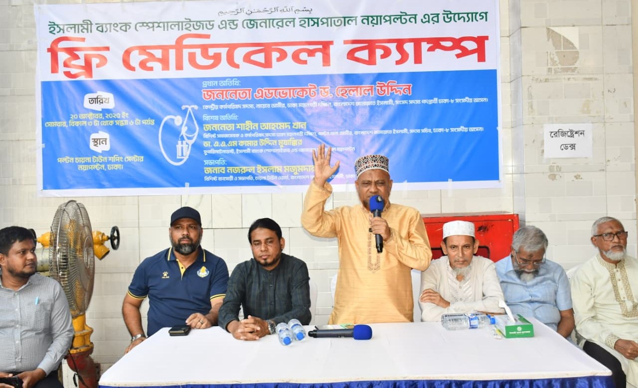 ইসলামী ব্যাংক স্পেশালাইজড অ্যান্ড জেনারেল হাসপাতাল, নয়া পল্টন শাখার উদ্যোগে সোমবার (২০ অক্টোবর) আয়োজিত ফ্রি মেডিকেল ক্যাম্পের উদ্বোধন করেন বাংলাদেশ জামায়াতে ইসলামীর কেন্দ্রীয় কর্মপরিষদ সদস্য ও ঢাকা মহানগরী দক্ষিণের নায়েবে আমীর, ঢাকা-৮ আসনে জামায়াত মনোনীত সংসদ সদস্য প্রার্থী ড. হেলাল উদ্দিন।