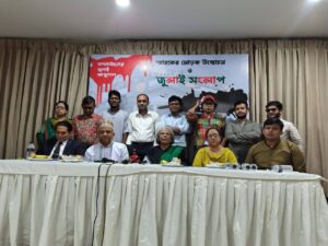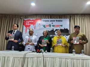 মুক্ত গণমাধ্যম মঞ্চের উদ্যোগে ‘গণমাধ্যমের জুলাই আত্মদান’ মোড়ক উন্মোচন ও জুলাই সংলাপ অনুষ্ঠিত হয়েছে। বুধবার (২৯ অক্টোবর) রাজধানীর বিশ্বসাহিত্য কেন্দ্রের ‘গণমাধ্যমের জুলাই আত্মদান’ মোড়ক উন্মোচন ও জুলাই সংলাপে প্রধান অতিথি হিসেবে উপস্থিত ছিলেন অন্তর্বর্তীকালীন সরকারের সমাজকল্যাণ মন্ত্রণালয়ের উপদেষ্টা শারমিন এস মুরশিদ।