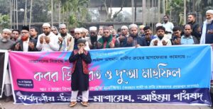 আলোচনা সভা শেষে দেশবরেণ্য ওলামা মাশায়েখবৃন্দ শহীদ শরীফ ওসমান বিন হাদির কবর জিয়ারত করেন।