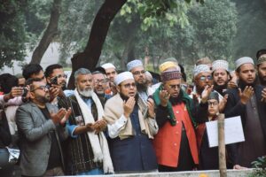 ভারতীয় আধিপত্যবাদবিরোধী আন্দোলনের অন্যতম বীর ইনকিলাব মঞ্চের আহ্বায়ক শহীদ শরীফ ওসমান বিন হাদির স্মরণে শুক্রবার (২৬ ডিসেম্বর) বাদ আসর ঢাকা বিশ্ববিদ্যালয় কেন্দ্রীয় মসজিদে সর্বদলীয় ওলামা মাশায়েখের উদ্যোগে এক আলোচনা সভা ও দোয়া অনুষ্ঠিত হয়েছে। সভায় বক্তব্য রাখেন সম্মিলিত ওলামা পরিষদের মহাসচিব মুফতি ড. খলিলুর রহমান মাদানী, ইসলামি কানুন বাস্তবায়ন পরিষদের মহাসচিব মাওলানা ফয়েজুল্লাহ আশরাফী, ওলামা মাশায়েখ পরিষদ ঢাকা মহানগরী দক্ষিণের সভাপতি অধ্যক্ষ মাওলানা মোশাররফ হোসাইন, সম্মিলিত ওলামা মাশায়েখ পরিষদের নির্বাহী সদস্য অধ্যক্ষ শহীদুল্লাহ, ওলামা মাশায়েখ পরিষদের প্রেসিডিয়াম সদস্য শাহ আবদুল মনিব নাসীরি, অধ্যক্ষ ড. মহিউদ্দিন আহম্মদ, অধ্যক্ষ রফিকুল ইসলাম মিয়াজী, অধ্যক্ষ আবদুর রহমান আল আজহারী, অধ্যক্ষ মুফতি নুরুল আমিন, অধ্যক্ষ মুফতি আজহারুল ইসলাম, মুফতি শফিক বিন বাহাউদ্দিন, মুফতি আবদুল গনি, মাওলানা আনিসুর রহমান, মুফতি মোসতাজা বিল্লাহ, মুহাদ্দিস আবু হানিফ মিশারী, ঢাকা বিশ্ববিদ্যালয় কেন্দ্রীয় মসজিদের খতিব মাওলানা নাজির মাহমুদ প্রমুখ।
