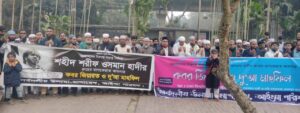 বক্তারা বলেন, শহীদ শরীফ ওসমান বিন হাদি নিজের জীবন দিয়ে আমাদের সম্মান, স্বাধীনতা ও ন্যায়ের পক্ষে সাক্ষ্য রেখে গেছেন। শহীদ ওসমান হাদির রক্ত আমাদের মনে করিয়ে দেয়, অন্যায়ের কাছে মাথা নত না করাই সত্যিকারের মানবিকতা। শক্তিশালী প্রতিবেশী রাষ্ট্র হিসেবে ভারতের সঙ্গে কারো সম্পর্ক ভালো নয়। আগ্রাসন শুধু অস্ত্রের আঘাত নয়, এটি ন্যায়, মানবতা ও বিবেকের ওপর আঘাত। সাংস্কৃতিক আগ্রাসনের ব্যাপারে হাদি সবসময় আওয়াজ তুলতেন, আর কোনো গডফাদারনির্ভর নেতিবাচক চিন্তাধারাকে ভয় না পেয়ে সাহসী হয়ে সাংস্কৃতিক আগ্রাসনের বিরুদ্ধে আমাদের সোচ্চার হতে হবে। নতুন নতুন নেতিবাচক শক্তির জন্ম হবে, ভারতীয় আগ্রাসন বন্ধ হবে এই দর্শনের বিরুদ্ধে জীবন দেওয়া আজ নতুন কোনো বিষয় নয়। মুজাদ্দেদে আলফেসানী থেকে শুরু করে শহীদ তিতুমীরসহ বহু বীর মুজাহিদ এসব আগ্রাসনের বিরুদ্ধে সোচ্চার হয়ে জীবন দিয়েছেন, আমরাও প্রস্তুত। যে শক্তি দুর্বলকে দমন করে, যে ক্ষমতা সত্যকে চাপা দিতে চায়, তার বিরুদ্ধে শহীদের জীবন ছিল এক নীরব কিন্তু শক্ত প্রতিবাদ। আমরা বলি, আমরা আগ্রাসনের পক্ষে নই, আমরা জুলুমের বিরুদ্ধে। শহীদরা শুধু অতীতের গল্প নন, তারা আমাদের বর্তমানের দায়িত্ব। অন্যায় দেখেও চুপ থাকা, নির্যাতন জেনেও নির্লিপ্ত থাকা এগুলোও এক ধরনের অপরাধ। নৈতিক দায়িত্ব মানে শুধু কথা বলা নয়, সত্যের পক্ষে অবস্থান নেওয়া। ব্যক্তি হিসেবে আমাদের দায়িত্ব সৎ থাকা, অন্যায়কে না বলা, দুর্বলকে রক্ষা করা।
