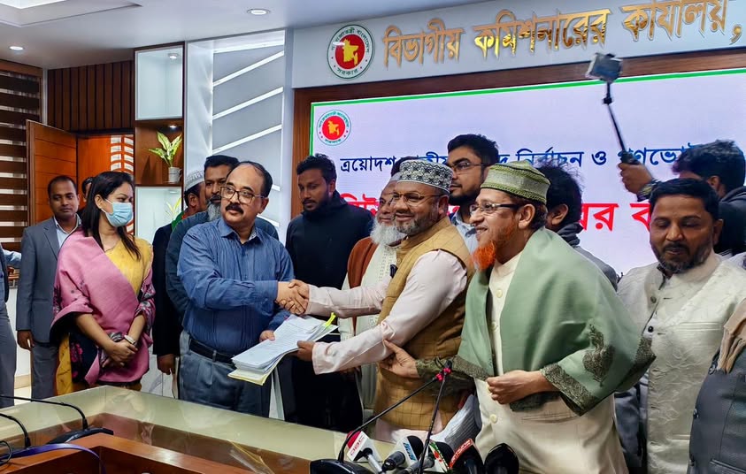 আসন্ন ত্রয়োদশ জাতীয় সংসদ নির্বাচনে প্রতিদ্বন্দ্বিতা করার লক্ষ্যে ঢাকা মহানগরী দক্ষিণ এলাকার ৬টি সংসদীয় আসনে বাংলাদেশ জামায়াতে ইসলামী মনোনীত ৬ জন প্রার্থী সোমবার (২৯ ডিসেম্বর) রিটার্নিং অফিসারের কার্যালয়ে মনোনয়নপত্র জমা দিয়েছেন।