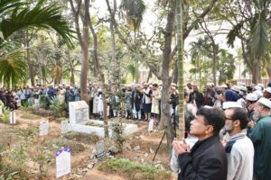 আজ (২২ জানুয়ারি) সকাল ৭.৩০ টায় শহীদ জুনায়েদ, শহীদ আনাসসহ জুরাইন কবরস্থানে দাফনকৃত জুলাই অভ্যুত্থানের সকল শহীদদের কবর জিয়ারতের মাধ্যমে নির্বাচনের আনুষ্ঠানিক প্রচারণা শুরু করেন ঢাকা-৬ আসনে জামায়াতে ইসলামী মনোনীত ও ১০ দলীয় জোট সমর্থিত সংসদ সদস্য প্রার্থী ড. আব্দুল মান্নান।