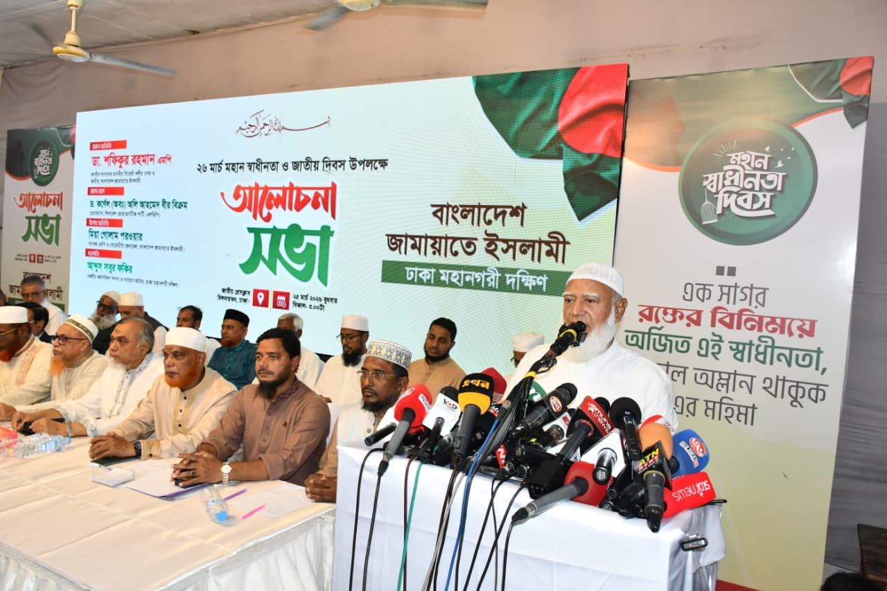 ২৬ মার্চ মহান স্বাধীনতা ও জাতীয় দিবস উপলক্ষে বাংলাদেশ জামায়াতে ইসলামী ঢাকা মহানগরী দক্ষিণের উদ্যোগে প্রেসক্লাবে আলোচনা সভা অনুষ্ঠিত হয়েছে।