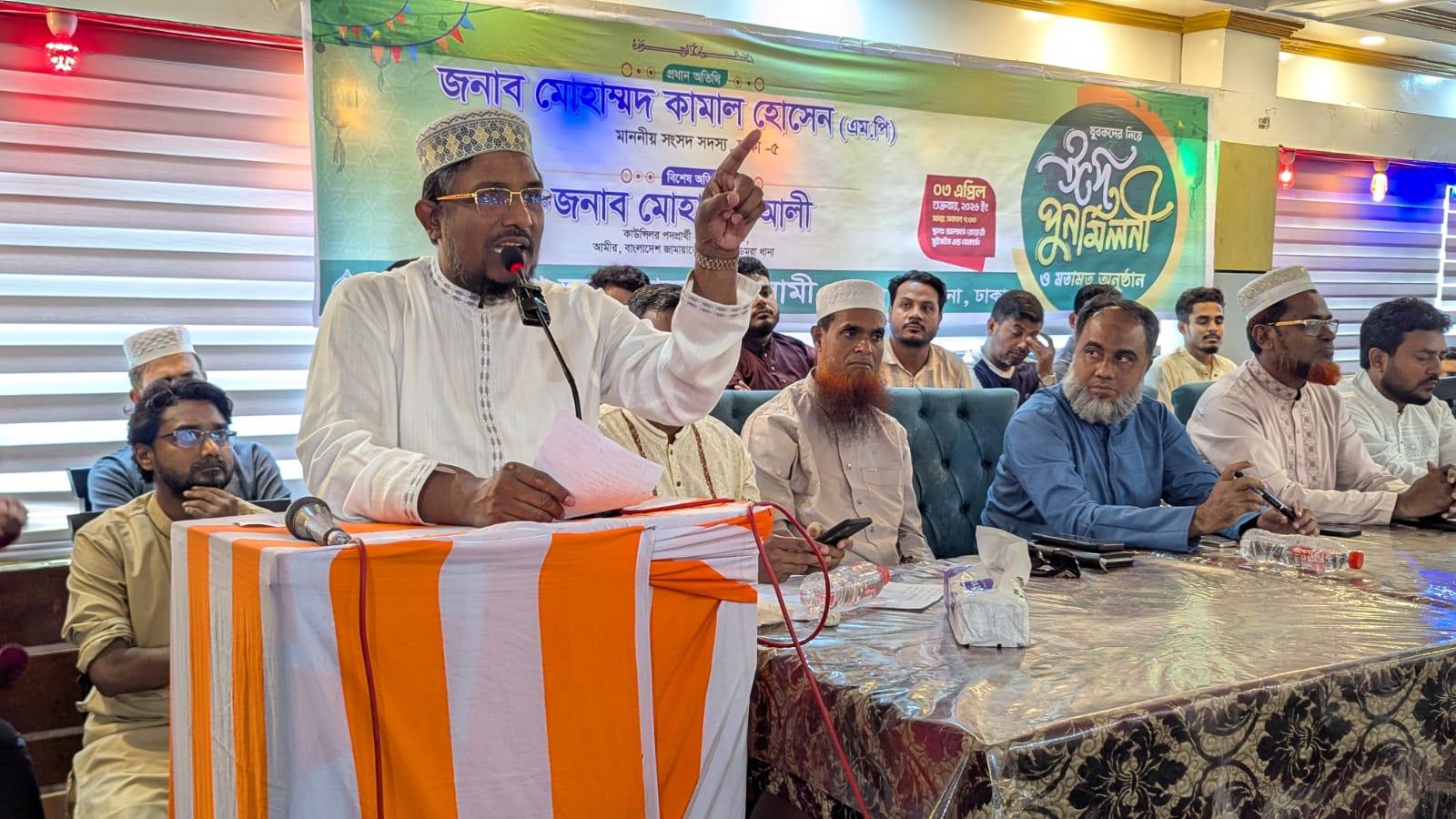 বাংলাদেশ জামায়াতে ইসলামী ডেমরা মধ্য থানার উদ্যোগে শুক্রবার (৩ এপ্রিল) সকালে ঈদ পুনর্মিলনী অনুষ্ঠান ও স্থানীয় ক্লাব/সামাজিক সংগঠনের নেতৃবৃন্দের সঙ্গে এক মতবিনিময় সভা অনুষ্ঠিত হয়েছে। সভায় প্রধান অতিথি হিসেবে উপস্থিত ছিলেন বাংলাদেশ জামায়াতে ইসলামীর কেন্দ্রীয় মজলিসে শুরা সদস্য ও ঢাকা মহানগরী দক্ষিণের সহকারী সেক্রেটারি (ঢাকা-৫ আসনের সংসদ সদস্য) মোহাম্মদ কামাল হোসেন এমপি।