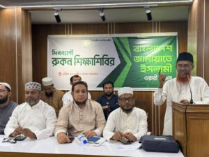 বাংলাদেশ জামায়াতে ইসলামী ওয়ারী অঞ্চলের রুকন শিক্ষাশিবির শুক্রবার (০৩ এপ্রিল) দিনব্যাপী অনুষ্ঠিত হয়েছে। মহানগরী দক্ষিণ কার্যালয়ের হলরুমে অনুষ্ঠিত শিক্ষাশিবিরে প্রধান অতিথি হিসেবে উপস্থিত ছিলেন বাংলাদেশ জামায়াতে ইসলামীর সহকারী সেক্রেটারি জেনারেল মাওলানা আব্দুল হালিম। বিশেষ অতিথি ছিলেন কেন্দ্রীয় নির্বাহী পরিষদ সদস্য এবং কেন্দ্রীয় প্রচার ও মিডিয়া বিভাগীয় সম্পাদক এডভোকেট মতিউর রহমান আকন্দ, কেন্দ্রীয় কর্মপরিষদ সদস্য ও ঢাকা মহানগরী দক্ষিণের নায়েবে আমীর আব্দুস সবুর ফকির।
