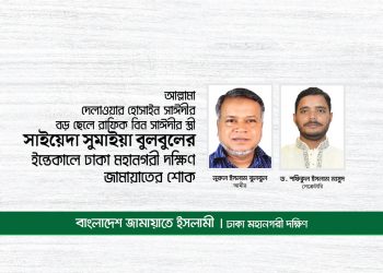সংবাদ আল্লামা দেলাওয়ার হোসাইন সাঈদীর বড় ছেলে রাফিক বিন সাঈদীর স্ত্রী সাইয়েদা সুমাইয়া বুলবুলের ইন্তেকালে ঢাকা মহানগরী দক্ষিণ জামায়াতের শোক আগস্ট 26, 2020